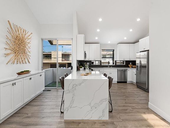 Enjoy the Cardiff lifestyle in this beautiful & modern home with stunning panoramic ocean views & west of the 5. Offering 3 bedrooms, 2.5 baths & just a short walk to Seaside Market, the beach and tons of restaurants & shops. You are welcomed by beautiful vaulted ceilings that open up to massive picturesque windows with an ocean view backdrop. Remodeled kitchen in 2020 including quartz countertops with waterfall edge, sleek white shaker cabinetry, stainless steel appliances & large island with bar seating. Freshly painted interior, custom motorized shades and upgraded luxury vinyl plank flooring throughout. Newer roof, HVAC, electrical panel, EV charger, LED lighting, water heater and fencing. Large, private backyard perfect for entertaining, gardening, pets, lounging, etc. Plenty of parking with 2 car garage and additional driveway spots. Multiple viewing decks from the living room and primary suite make this the perfect ocean view home just blocks to the surf and sand. Buyer and buyer’s agent to verify all in MLS prior to COE.