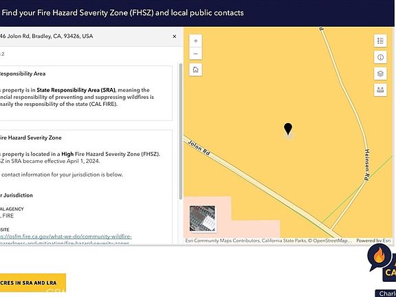This 40.11 acres of land nestled against the foothills of Bradley, CA features rolling terrain with 360-degree views from an elevated vista point. The property includes two domestic wells – only one active, septic, access to power on three different sides of the parcel, Starlink internet, and a 1,196 SF house that is currently not inhabitable. By utilizing structural walls that are in serviceable condition, the County of Monterey would consider it eligible as a remodel rather than new construction – giving an opportunity to take advantage of this significant cost-saving potential. For new construction, five potential build sites for a residence, workforce housing, or other structures have been located, and the property’s use code is zoned as Rural/Agricultural Residence.
