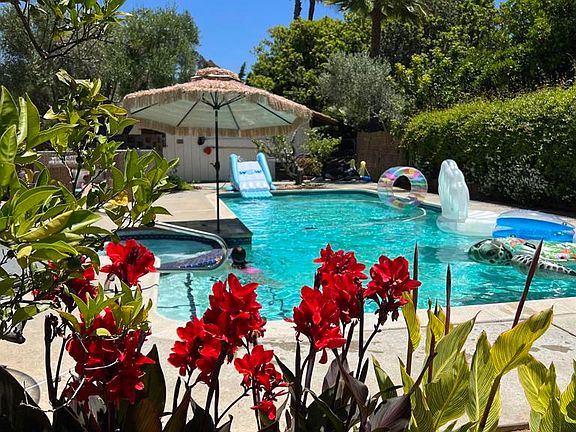 Welcome to your dream retreat! This beautifully renovated modern mid-century home in Fallbrook offers a serene oasis perfect for relaxation and entertainment. Crafted with care and high-quality materials, every detail of this home shines. Step inside to discover a spacious layout that seamlessly blends indoor and outdoor living. The inviting living area flows effortlessly to the stunning backyard, featuring a sparkling pool. Set against a backdrop of beautiful mature trees and a variety of fruit trees, the fully fenced yard provides both privacy and a tranquil retreat. This home’s outdoor oasis is an idyllic setting for summer gatherings or peaceful evenings. With top-rated Airbnb status and glowing reviews, this home is a fantastic investment opportunity for those looking to capitalize on the booming vacation rental market. Guests love the peaceful setting, all while being just minutes from renowned wineries and scenic hiking trails. Whether you're seeking a personal sanctuary or a lucrative rental, this Fallbrook gem is ready to welcome you. Don’t miss out on the chance to own your very own piece of paradise!