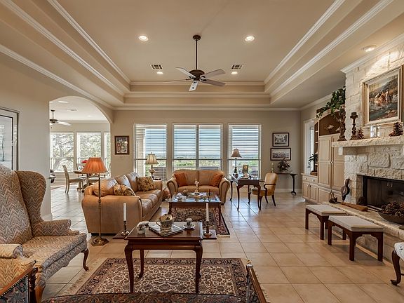 Astounding view of the distant city lights from just about every room in the house! If you love to cook, you'll appreciate the abundance of countertops, cabinet space, large island & oversized casual eating area. It's sure to be the hub of activity while entertaining. As you enter the home, you are captivated by the spacious great room overlooking a valley to the south. Moving through the great room you'll reach the combo kitchen/casual eating area which offers easy access to the oversized covered patio & deck area. The fenced manicured yard has planned areas for gardening, a shaded peaceful sitting area & room for children or pets to play. The primary bedroom is roomy enough to handle large furniture & has a wall of windows to enjoy the view. Two guest bedrooms have separate sink & commodes and share a tub/shower combo. An office or hobby room connects to the casual dining area just off the kitchen. The Seller says the best aspects of this home are its openness & view. Whether for family, work-from-home professionals or retirees, this home has the perfect layout. Located less than 2 miles from I-10 & 3 miles to the center of Kerrville. You'll love living in The Summit!