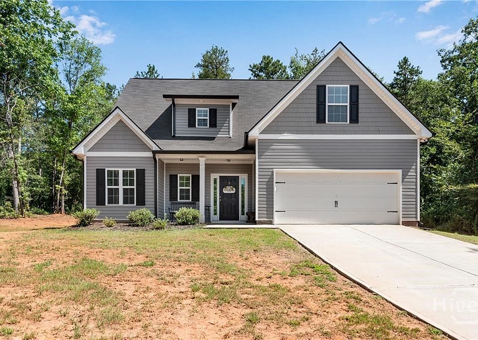 SGW Homes "Oakdale" Plan featuring Primary Suite on Main built on just over an acre private wooded lot! Enjoy quiet peaceful living off this county maintained gravel road. Easy to maintain vinyl exterior. Front porch opens to the foyer w/luxury vinyl flooring extending through all main living areas and baths. Granite Island eat-in kitchen w/walk-in pantry views the great room w/wood burning fireplace. 2" blinds throughout. ALL ELECTRIC HOME - NO HIGH GAS BILLS! Primary suite features a HUGE walk-in closet, double vanity, garden tub and separate shower. ALL bathrooms feature granite counter tops. Upstairs offers a loft area 3 secondary bedrooms and 2 full baths. Just 15 minutes to Tanger Outlet Mall and Dining.