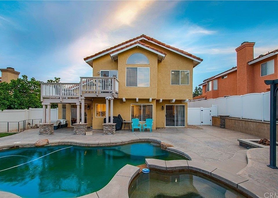 Beautiful 4 bedroom, 3 bath pool home, with 3 car garage in beautiful, well-kept community of Orangecrest. Home has New Waterproof Vinyl plank throughout. Newly remodeled kitchen with Granite countertops, large center island, gas cook top, double oven and walk-in pantry. Downstairs features a double door bedroom with access to full bath, laundry room and cozy fireplace in family room. Master retreat has newly remodeled bath with marble countertops, freestanding tub, glass shower, 2-sided gas fireplace and large walk-in closet. Master also has large balcony with beautiful city light views. Relax in the backyard with private pool and spa, featuring stamped concrete yard. Block back wall and vinyl fencing on both sides with 2 gated side yards. Close to Schools, shopping, and banking. Easy access to 215, 60 or 91 freeways. This home won't last long