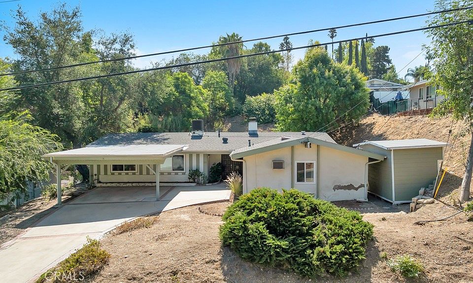 The bedroom wing features four rooms with vaulted ceilings, including a primary suite with dual closets and a walk-in shower. Additional highlights include a tasteful storage shed in the side yard, an enclosed bonus storage area off the family room, and a convenient laundry closet located in the family room. A attractive carport provides shade and protection for your vehicles.