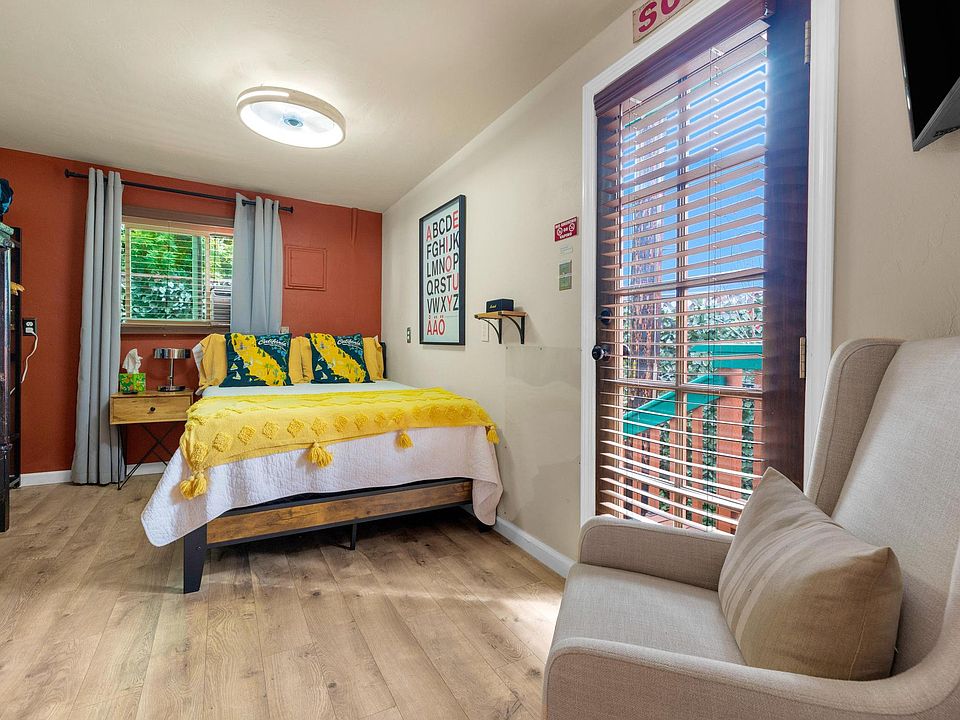 This is a small room attached to the back of our house but has its own private entrance and walkway. No shared spaces.
