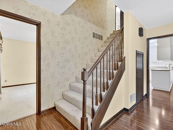Nestled in one of Findlay's most desirable East side neighborhoods, this classic beauty offers spacious rooms throughout! Kitchen boasts great counter space plus breakfast area overlooking the family room with cozy gas fireplace. Separate formal dining room could serve other purposes such as an office. Large living room filled with natural light. Upstairs offers all four bedrooms and full baths, including a primary suite. Main floor laundry and half bath. Enjoy time in the sunroom overlooking the beautiful yard filled with mature trees. Conveniently located near shopping, dining and more!