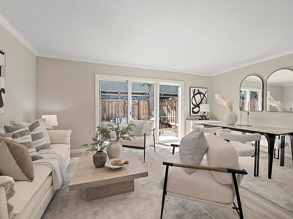 Step inside to discover a freshly painted interior, including new, stylish LVP flooring that enhances the home's inviting ambiance. The open-concept main level features a light-filled living/dining area and a refreshed kitchen designed for both daily living and effortless entertaining. A sliding glass door opens to a private south-facing patio surrounded by greenery - perfect for relaxing, gardening and gathering with friends. Upstairs there are two spacious bedrooms, a washer and dryer, a full bath and a generous walk-in closet. Additional highlights include access to a well-maintained heated community pool and extra storage. Nestled in a vibrant, walkable neighborhood, this home is close to top-rated schools (buyer to verify school eligibility), beautiful parks and scenic bike paths. Enjoy easy access to local shops, cafes and farmers markets, major tech employers such as Google, Apple and Meta, as well as convenient connections to Caltrain, highways and tech shuttle routes.