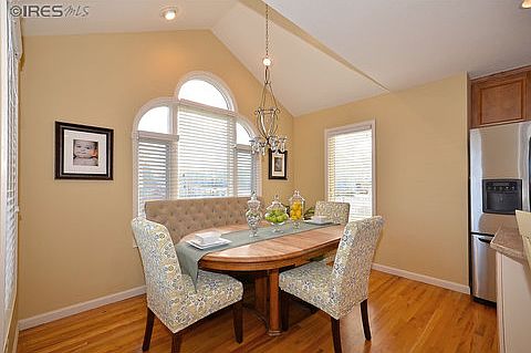 Outstanding home on corner lot with natural open space in back yard. Poudre River walking/biking trails and ponds close by. Amazing remodeled gourmet kitchen with granite slab, check out all the cabinets in the island,beautiful wood floors, gas range, ss appliances. Lrge breakfast nook with ample windows for plenty of natural light. Truly a chefs dream! Lovely mstr suite with sitting area and vaulted ceilings. Designated Poudre school Dist sought after schools!Lovely home that is sure to please.