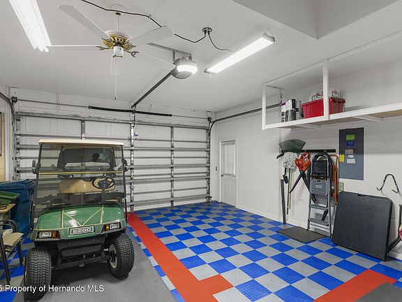 to R30, newer water heater, screens on garage, race tech tiles on floor in garage, pull down stairs to attic with additional storage. Also, golf cart comes with this villa. Outside patio for relaxing. Water filter under kitchen sink.