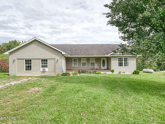 The covered front porch welcomes you into a spacious living area with vaulted ceilings and warm, inviting finishes. The kitchen features ample cabinet space and a cozy breakfast bar that opens to the dining area—perfect for everyday family meals or weekend gatherings. French doors lead to a back deck overlooking peaceful countryside views, ideal for morning coffee or stargazing at night.