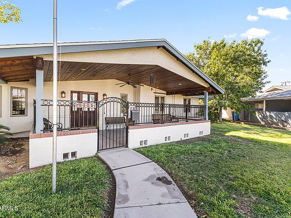 Beautifully updated 3,347 sq ft home on a 0.42-acre lot in Encanto Estates with private guest quarters. Features include Pella dual-pane windows, vaulted ceilings, gas fireplace, custom built-ins, and a spacious family room leading to a bricked patio with water feature. Chef's kitchen includes dual sinks, walnut island, maple island with seating, Bosch dishwasher, and extensive storage. Guest quarters offer private entrances, ADA bath, and full living areas. RV gate, brick shed, citrus trees, 2 A/C units, 2 evap coolers, and extra parking. A rare Phoenix find.