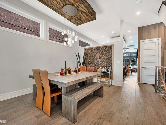 The moment that you walk into this home you will know that you've found the levels of design, comfort, luxury and location that are perfectly aligned with your vision of what home should be. Whether its the smooth flow of the layout, the abundant natural light, the 11 foot ceilings on the main level and 10 foot ceilings upstairs and in the basement, the gorgeous custom carpentry and adornments, the surprisingly large bedrooms, the lavish finishes and fixtures throughout or the multiple outdoor spaces and rooftop skyline views, 2047 W Huron is the joyful place for you to make memories for a lifetime. Immediately upon entering the home you'll be struck with the beauty of gorgeous flooring, Lightology lighting, built ins, fireplace and an overly spacious dining room. Really, the perfect entertaining space, but it doesn't end there. Just past the modern design of the powder room, you'll step into a kitchen that exists in the dreams of all home chefs. Elegant quartz island with waterfall edges, sleek cabinetry, glass tile back splash and a Thermador appliance package that includes a 6 burner range with a flat top grill, double ovens, built in coffee maker and a side by side 30 inch refrigerator / freezer. Want to take a break from cooking and relax with your loved ones or guests? The family room off of the kitchen is just a few steps away and is big enough for couches that let everyone spread and chill while watching their favorite movies. And of course that family room does not disappoint, boasting the same level of built in storage, shelving and another fireplace. It also walks out to one of the most beautiful multi level outdoor spaces that you can find with composite decking, great privacy, and a garage rooftop space dressed up with a custom pergola. The second level offers just as much beauty and taste as the rest of the house. The primary suite is luxurious and grand. And you'll never run out of space in the dressing room, equipped with a design and efficiency in mind closet system that makes being organized with all of your garments, shoes, belts, accoutrements and seasonal ware intuitive and easy. A lavish suite is never perfect without an opulent rest room. Frosted glass commode for privacy with a bidet (of course), vanities on opposite sides of the room and a gigantic glass enclosed shower in the middle with all the sprays that one could ask for. The 2nd and 3rd bedrooms share a Jack and Jill bathroom and keep with the rest of the house being spacious, light filled and well appointed. One of the two laundry areas is off the hallway and the stairs up lead to a rooftop indoor mini kitchen with wine storage, refrigerator, and a door out to the full composite decking roof top that offers, gas, water and electric, a skyline view in back and tree top views in front. The lower level is just as perfect. A giant playroom with yet another fire place and kitchen, heated floors 2 more huge bedrooms, and a full bath and laundry room. The back bedroom is wired to be a home theater but currently used as a home gym and guestroom. 2 HV/AC systems and nest thermostats keep the temp where you want and a tankless water heater ensures that you'll never run out of hot water. Security is installed with ADT and aside from the front gate and the garage door, there is no other direct access to the property. The huge 2.5 car heated garage offers additional storage in the rafters and opens to a wide alley that makes getting in and out simple and smooth. This home has everything and there's nothing comparable in the West Town / Ukrainian Village neighborhood. Walk out the door and you're a block away from the grocery store, steps away from a multitude of delicious dining options, bakeries, bars, breweries and more. The brand new Damen stop of the green line is under construction and soon to be completed and expressways are a short distance to access from Huron. Please schedule a tour, you will not be disappointed. Welcome Home!