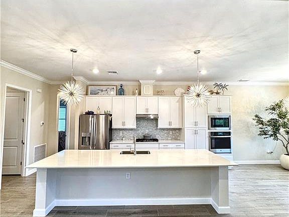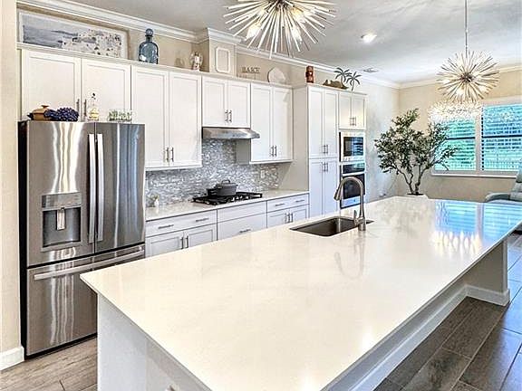 Rare Oakmont 2 Estate Home in Verdana Village Don’t miss this great opportunity to own one of only three Oakmont 2 Estate Homes built in Verdana Village! This 2023 Lennar home offers spectacular Preserve views, abundant nature, and breathtaking reflective sunsets—This home offers a 3 rail aluminum fenced backyard, perfect for pets. This spacious residence features 3–4 bedrooms, a den/flex room, 2.5 baths, and a 3-car garage. The living area showcases a stone fireplace wall with an 85” TV, Sound Bar, custom wood shelving, and a porcelain hearth, along with a wood coffered ceiling for added elegance. The chef’s kitchen is designed for entertaining, with quartz countertops, tile backsplash, a gas cooktop and oven, vent hood, and a large island seating five. Modern designer lighting enhances the kitchen, breakfast area, dining room, and master bath. Additional upgrades include plantation shutters, crown molding, 8-foot doors, soaring ceilings, and tile floors throughout—no carpet. Enjoy seamless indoor-outdoor living with a large screened lanai with pavers, sliding doors to the living and breakfast areas, private access from the master suite, and an extended paved patio for outdoor gatherings. This home is partially furnished, White reclining sectional sofa Master suite: king bed, armoire, long console, and chair Guest suite: white velvet king bed, dresser, and nightstand Lanai sofa, 2 chairs, and a gas grill, firepit Front porch loveseat With ample storage and parking in the 3-car insulated garage, this Oakmont 2 Estate combines luxury, comfort, and exclusivity. Verdana Village is a true resort-style community. No Flood zone, so no water problems. NO FLOOD INSURANCE! The residence at Verdana Village enjoys the indoor/outdoor tennis and pickleball court, indoor basketball court/gym, workout room, yoga room with many classes, bocce ball, green space, playground with covered shade, Full restaurant service, Craft Lounge, resort-style pool, spa, cafe, and indoor outdoor seating with patio bar. Next to Verdana Village is a new Publix Grocery Store, Dunkin Donuts, a new Fire Station across from Verdana with full EMS Service, Nail Salon, UPS Store, Hair Salon, Legno Italian Restaurant, coming soon, Fifth Third Bank, and a Dentist's office. Just past Verdana is a Winery and a Wedding Venue. Corkscrew Golf Club is open to the public and is only 1.5 miles away. Verdana Village offers many amenities and amazing activities always going on. Plus, the residents love it here! Many more businesses to come. A truly rare find in Verdana Village.