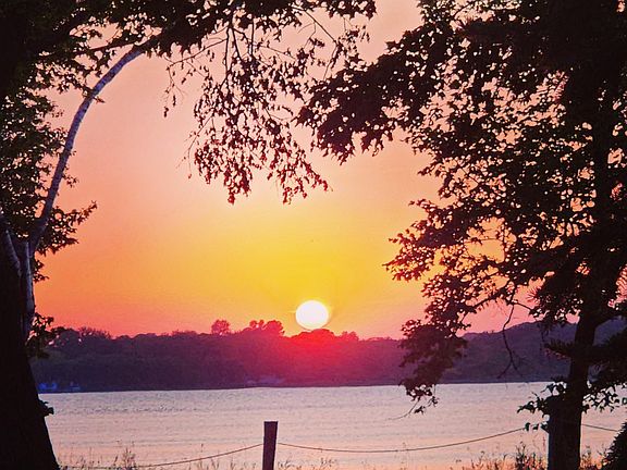 Expansive flat lake frontTwo aluminum boat liftsSunset viewsGood fishingNew carpetUsable green spaceMature trees