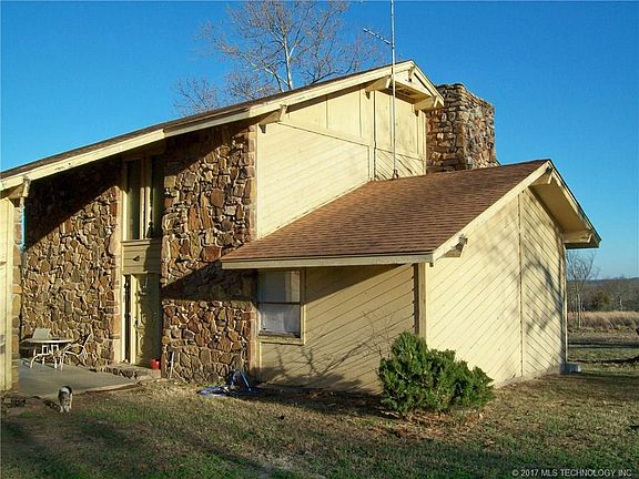 Quiet location to enjoy the view from all the windows. The living room features a vaulted ceiling and rock fireplace. Large kitchen with lots of cabinet space. One bed and bath downstairs and two bedrooms and bath upstairs. Lots of possibilities.