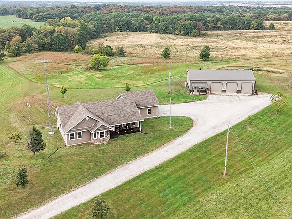 Custom Built 4 BR, 2 BA 2012 Home on 24.5 Surveyed Ac. w/ 40' x 72' Outbuilding on Blacktop!! 2058 Sq. Ft on Main Floor & Full Unfinished Walkout Basement Below - Potentially 4116 Sq. Ft. Home - Ground Source Heat - Custom Hickory Cabinets In Kitchen w/ White Oak Cutting Board Island - Hickory Hardwood Flooring - Pella Windows (Low E) - Oversized Living Room - Scenic View of Property from Master BR w/ Tailored Walk In Closet - Custom Tile Master BA w/ Walk In Shower - Main Floor Laundry - Outbuilding has 6'' Concrete Floors w/ Rebar & Fiber - (3) 12' Overhead Doors - Full BA & Kitchen Area - Walking Paths through Farm - Abundant Deer & Turkey - 11.13 Acres are in CRP @ $119.15 per Acre!!