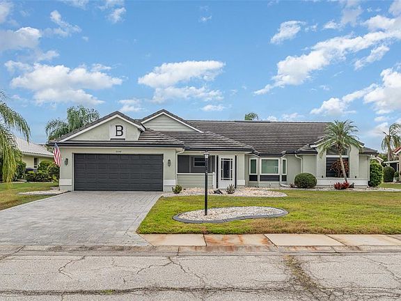 One or more photo(s) has been virtually staged. Elegant and Thoughtfully Updated Home in the Heart of Sun City Center Welcome to this beautifully updated 3-bedroom, 2-bathroom residence offering nearly 2,000 square feet of refined living space. Set amidst lush landscaping this home perfectly blends modern updates with timeless Florida charm. Recent upgrades ensure peace of mind, including a newer roof (2020), HVAC system (2020), hot water heater (2023), and water softener. Step through the screened front entry into a light-filled living and dining area, enhanced by luxury vinyl flooring, fresh interior paint, and a bright, open ambiance. The kitchen is a chef’s delight—featuring solid wood cabinetry, gleaming quartz countertops, stainless steel appliances, a skylight, updated lighting, ceiling fan, and a cozy eat-in breakfast nook. The split-bedroom layout offers privacy for residents and guests alike. The owner’s suite includes a dedicated office space, stylish barn doors, dual walk-in closets, and an elegant en-suite bath complete with solid surface counters, a vessel sink, and a walk-in shower. Ceiling fans are thoughtfully placed throughout the home for comfort, while the well-appointed guest bath and laundry room—with upper cabinetry and a utility sink—add everyday convenience. Situated in the vibrant 55+ community of Sun City Center, residents enjoy access to world-class amenities, including pools, fitness facilities, social clubs, and recreation options for every interest. Ideally located between Sarasota and Tampa, you’ll find yourself just minutes from airports, premier shopping, dining, entertainment, and Florida’s award-winning Gulf Coast beaches—all while enjoying a serene, active lifestyle. Experience the very best of Florida living in this meticulously cared-for and move-in-ready home—where comfort, elegance, and community come together seamlessly.