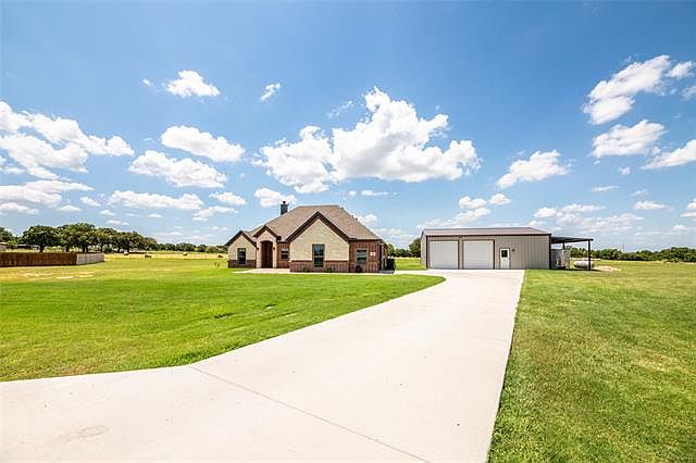 Gorgeous Home Located in a nice new subdivision has 3 bedrooms 2 bath, study with a 2 car garage. This home has a rock, wood burning fireplace in living room, along with boxed ceilings in study, living area and master bedroom, lots of extra trim work. Master bath has a separate tub and walk-in shower, walk-in closet. Tile floors with carpet in bedrooms. Kitchen has large bar with rock wall and granite top. Beautiful pool with outdoor kitchen-grill is great for entertaining, surrounded by pastures & has spectacular views! Area is Between Springtown and Azle and close to Ft. Worth. Yard care & pool service included! Huge metal building for extra parking or storage!