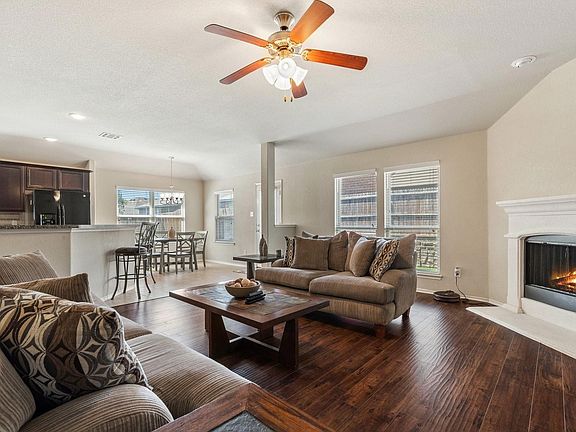 This well-maintained former model home in Princeton offers a single-story open floor plan with neutral colors, a kitchen featuring black appliances, breakfast bar, and dark cabinets, and a primary suite with laminate wood floors, dual sinks, separate tub and shower, and a spacious walk-in closet. A large wooden deck overlooks the fenced backyard, perfect for pets or play, and the home comes complete with a refrigerator, washer, and dryer. New carpet was installed in August 2025. Conveniently located near the community pool, playground, elementary school, shopping, dining, and major highways. 2025-10-01