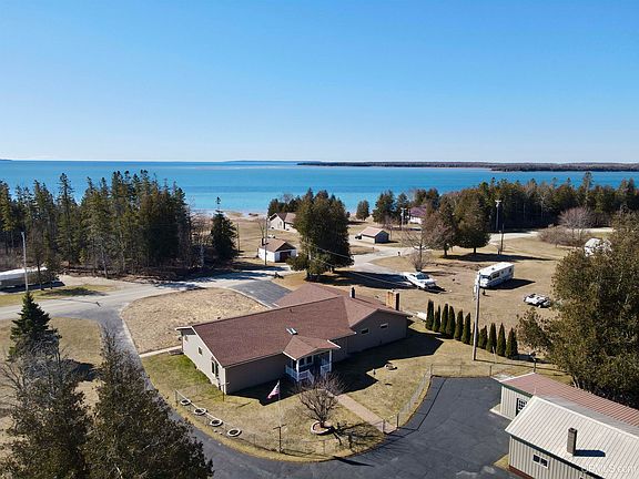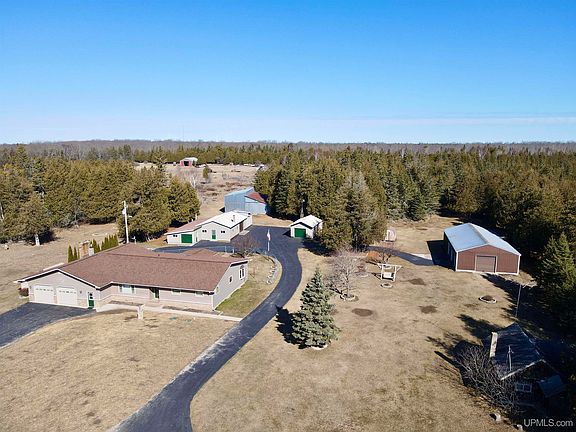 Impressive lake view home on over 11 acres! This expansive ranch style home with 4 bedrooms and 3 full baths is a must see. The home has been lovingly cared for and updated including a gourmet kitchen with hickory cabinets and corian countertops. Spacious master bedroom features a walk-in closet and master bath with a jetted tub and separate shower. Completely new septic system added in 2023. Additional recent updates include a new furnace installed in 2023 and a new roof in 2021. With a history in commercial fishing, the main outbuilding was used in fish processing and has large walk-in refrigeration. With 4 sturdy out buildings and 3 sheds, the possibilities are endless. Build your business, work from home, or enjoy ample storage space for your lawn, gardening, recreational and seasonal equipment needs. Located directly across the road from Lake Michigan this 11 acres has frontage on 2 roads ii Rd as well as 6.25 Rd on the north side of the property. There are several fee based boat launches and marinas with boat slips available just steps away from this home. Fairport is a small community located at the southernmost tip of the beautiful Garden Peninsula. Fairport is a sport fishing destination that also maintains a small commercial fishing fleet. From Fairport you can island hop to Washington Island and Door County Wisconsin. Beautiful sand beaches waiting for exploration just a short side-by-side ride from your doorstep. The Garden Peninsula offers many recreational opportunities including Fayette State Park, abundant wildlife, and legendary whitetail hunting. The perfect location for a permanent home, seasonal retreat, vacation rental, storage business, or more! This home is ready to go and presents limitless living and business opportunities.