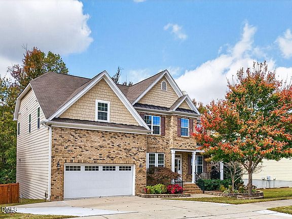 Welcome to this Beautiful Retreat in Apex's Sought after Neighborhood ''Bella Casa''. Brick front with charming covered porch. Designed with lots of windows, overlooking the private protected backyard wooded view from both inside and out. Enjoy your morning coffee or a quiet evening on the large deck or paver patio with firepit. Exceptional craftsmanship, timeless charm, and today's stylish upgrades. The open plan with neutral palate, designer lighting, wide plank luxury vinyl flooring, custom mouldings, gas fireplace, built-in cabinetry are just a few of the standouts. 5 bedrooms, 4 full baths, study with French doors and 2 bonus areas. Guest bedroom on the main floor, bath with walk-in shower. Huge chef's kitchen with an island fit for entertaining a crowd, double ovens, microwave with convection oven capability, walk-in pantry. The second floor boasts an exceptional primary suite with separate soaking tub, shower and 2 spacious walk-in closets. Another plus is a Jack and Jill bath with double sink vanity and ensuite bedroom/bathroom. Many recent home improvements, include bonus area addition, tankless water heater, new HVAC, driveway expansion (to 3 parking spaces), new dishwasher, flooring, paint, lighting, closet systems, and more. Walkable neighborhood positioned between Apex Friendship schools and Apex Nature Park/Seymore Athletic fields which features lighted tennis and pickleball, disc golf, dog park and greenways. Bella Casa amenities include 3 pools, clubhouses and tennis courts. Convenient to 540, historic downtown Apex, restaurants, entertainment and shopping. Bright and cheery, make this your dream home!