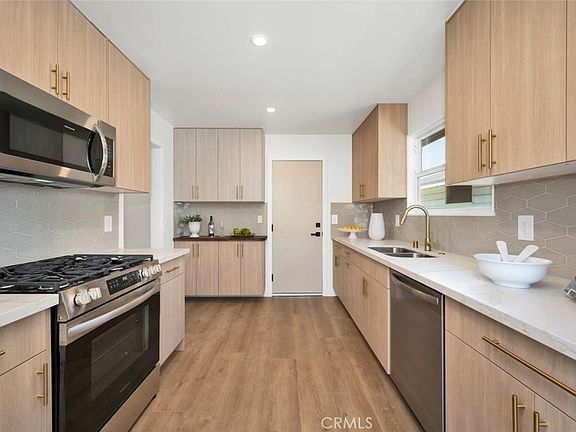 Walk to the park! Enjoy Summer Concerts in the Park! Quick drive to beach! Nestled in the highly coveted Plaza neighborhood, this 4 bedroom, 2 bath home has significant upgrades throughout, and remodel completed with city PERMITS. At 1399 sq ft, this home has a mid-century modern feel...And in the backyard...you'll love the bonus flex space of 104 sq ft...think office space, yoga studio, or playroom! Newly remodeled kitchen with designer cabinets, quartz countertops, gorgeous tile backsplash, butcher-block accent & new appliances including refrigerator. New LVT flooring. New windows. Remodeled bathrooms. Updated electrical with new 200 AMP electrical panel. New water heater. Newly painted interior and exterior. Lots of storage. New landscaping with automatic sprinklers and newly seeded lawn and cool firepit. New sleek garage door with smart technology. New energy-efficient LED lighting throughout, new interior & exterior doors, new base molding, new door and window casings, new hardware throughout, new fixtures throughout. HVAC. Perfect location to enjoy all SoCal and Long Beach has to offer. Welcome Home! Check out Virtual Tour.