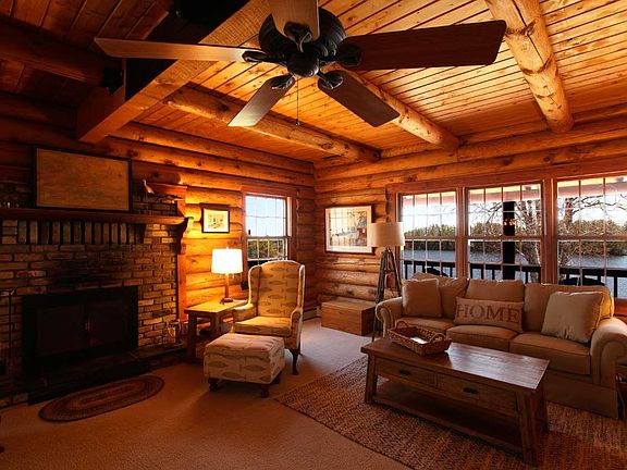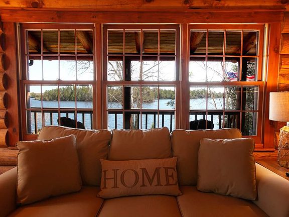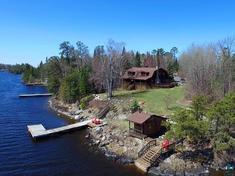 Custom One Owner Log Cabin Lake Home W/Excellent Swimming Shoreline, Private Gradual Lot, Right At The Edge Of Voyageurs National Park (East Of Voyageurs Is The BWCA)--Beautiful Water Views! Set on 150 ft south facing shoreline, protected location on Rainy Lake just 10 mi to town. Built 1988, 3060SF, 4+BR/3BTH home. Expansive great room w/natural light pouring in lakeside mullioned windows, massive wood burning fireplace, glass door open to wrap around covered lakefront deck. Spacious stainless kitchen open to great rm, dining rm & deck—all lakeside. Open main flr den could be enclosed for main flr lakeside master. Upstairs, 4 BRs all with lake views, including master w/private bth. Main flr laundry. Coverd entry porch, open yard for activites, paved drive, 2 docks, 4 stall garage, sauna by the lake! Click on link to view 3D Tour!