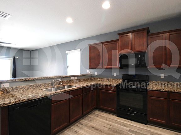 Available Now! Save with this Energy-Efficient Home Featuring Installed Solar & Shade Screens! This 3 bedroom, 2 bath, 1,552 sq. ft. single-story home in Maricopa's desirable Homestead community offers a newly remodeled interior with fresh paint, upgraded wood-like flooring, and plush carpet in all the right places. Designed for comfort and convenience, the home includes shade screens, wood blinds, and ceiling fans throughout. The open-concept layout features a charming eat-in kitchen with an expansive breakfast bar, new stainless appliancesincluding a side-by-side refrigerator, dishwasher, and microwaveand flows seamlessly into a spacious living and dining area, perfect for entertaining. The primary suite boasts a walk-in closet and full bath, while two additional bedrooms provide plenty of space for guests, or a home office. Outside, enjoy an oversized backyard with a covered patio and storage shed, ideal gatherings. Added upgrades include an installed RO system, water softener, and a security system with cameras ready for tenant activation. The home also offers a two-car garage, pest control services included, and the benefits of solar energy for lower utility costs. Homestead is a beautifully maintained community with a scenic lake, playgrounds, and walking and biking trailsmaking this home the perfect blend of comfort, efficiency, and lifestyle. 1 year worth of a/c filters and 12 bags of salt will be provided the first year. Pre-emergent for the front yard and trimming of pineapple tree twice a year is included. Tenants will be responsible for all other landscaping maintenance. Minimum credit score of 600 required.