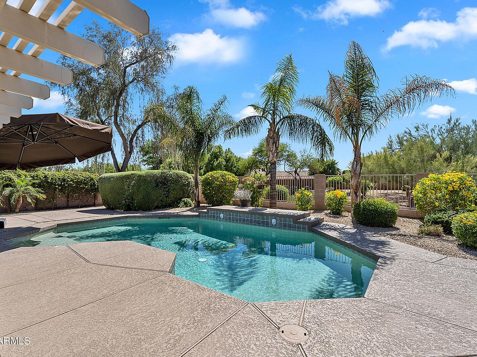 This beautiful 4BD/2.5BA single level home effortlessly blends elegance & comfort! Enter to a vaulted great room, with attached dining and office spaces that are highlighted by the sunlight that pours into the home. Primary suite offers a walk-out to the yard and spacious en-suite bathroom features double sinks with long vanity counter. The kitchen features granite countertops, large island, gas stove & SS appliances. Plantation shutters frame the living room, while a cozy fireplace adds warmth. Step outside to your private pool with a large covered patio; perfect for relaxing and entertaining! Don't forget about the 3 car garage, view fence in backyard & remote controlled shades in the great room! Don't miss it!