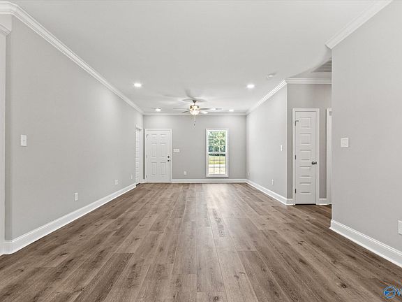 Eat-in kitchenCrown moldingOpen inviting feelGranite countertopsLvp flooringIsolated primary bedroom