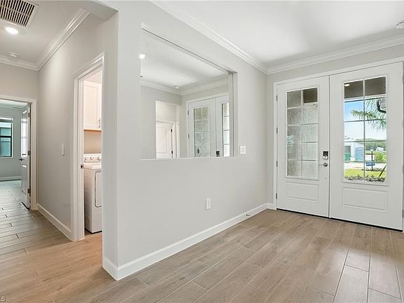 Exquisite Never-Lived-In Summerville Floorplan in Verdana Village | 20489 Verawood Loop Welcome to 20489 Verawood Loop — a never-lived-in and beautifully customized Summerville floorplan located in the highly sought-after community of Verdana Village. This spacious single-story home offers three bedrooms, three full bathrooms, and a versatile den — perfect for a home office, media room, or guest suite. With over $85,000 in premium upgrades, this home showcases exceptional craftsmanship, thoughtful design, and luxurious finishes throughout. As you arrive, you're greeted by elegant custom double glass entry doors and tongue-and-groove wood ceilings at both the front entry and lanai, setting the tone for the quality found within. Inside, crown molding enhances every room, while the open-concept living area features a stunning built-in entertainment center complete with a fireplace, mounted TV, and feature lighting — creating a warm and inviting space for relaxing or entertaining. The kitchen is a true showpiece, offering under- and over-cabinet lighting, a custom backsplash, designer tile with accent lighting beneath the island, and top-quality finishes. The adjacent den has been transformed into a fully custom-built office with cabinetry, shelving, and integrated lighting, making it ideal for remote work or study. Additional highlights include upgraded bathrooms with frameless glass shower doors, custom mirrors, designer lighting and ceiling fans in every room, and a fully outfitted laundry room with cabinets and shelving. A mirror feature wall in the front entry adds a sophisticated touch, while the three-car garage features durable epoxy flooring for a clean, polished look. Outdoor living is equally impressive. The expansive lanai is outfitted with a second entertainment center including a fireplace and TV, perfect for year-round enjoyment. The tongue-and-groove ceiling continues here, and the home’s east-facing rear exposure offers tranquil views of tall trees and a peaceful preserve. Located in a no-flood zone, this home also offers full access to Verdana Village’s resort-style amenities. Residents enjoy 18 indoor/outdoor pickleball courts, 8 indoor/outdoor tennis courts, a state-of-the-art fitness center, resort-style pool with outdoor bar, Drift Restaurant & Craft Lounge, indoor sports facilities, a children’s playground, and a dog park. Golf cart access to on-site retail — including Publix, Dunkin’, the UPS Store, Fifth Third Bank, and more — adds to the convenience. With close proximity to shopping, dining, Gulf Coast beaches, and RSW Airport, this move-in ready, never-lived-in home is a rare opportunity to own a fully upgraded residence with serene preserve views in one of Southwest Florida’s premier lifestyle communities.