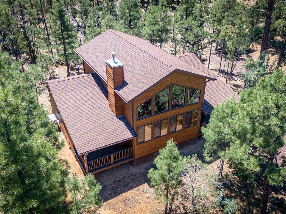 Like new cabin on majestically tree covered 2.50 acre homesite! This home has it all with open greatroom, soaring vaulted t&g ceiling, split floorplan and all rooms downstairs except the loft for game room or overflow guests! Peeled pole log railing, knotty alder cabinets, central gas heat & A/C plus fireplace are just some of the interior amenities and the exterior boasts beautiful smart siding with wood look but maintenance free. Private well (2,000 gal cistern for backup, new pump & bladder tank), huge carport/BBQ area, garage w/roll up door for the toys, shed and cul de sac location for low flow traffic....tucked away from the road among a ponderosa pine tree studded 2.50 acre lot....must see!