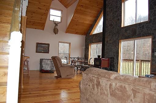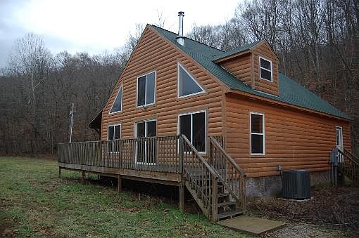 This beautiful wood sided house features an open living area including the kitchen, dining and living room. All overlooked by a loft on the second floor. There is a master suite on the ground floor and two bedrooms and two baths on the upper floor. There is also a two car garage with bonus room above. The bonus room is climate controlled. The house has Central Heat and Air throughout.From the deck, which wraps around three sides of the house, one can step off to a walkway and deck that rests on the creek bank beside the waterfall. There is a very nice wood stove in the livingroom.This house is only 3 years old and for a price most all the furniture can remain. Overall square footage, as stated by the owner, is approximately 3500'. Drinking water is provided by a well.The land has about 15 acres of hay ground with a frame barn. A little fence and this could become horse or cow pasture. Most all the open land can be seen from the house. The remainder of the 56 acres is woodland. Don't miss this one! Only $199,900.00Call 1-877-286-3140 or email unitedcountry@windstream.net