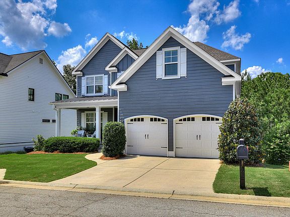 This stunning home is located in the highly sought-after community of River Island, offering both style and comfort in every detail. The covered front porch sets the tone, inviting you into the home where you'll immediately be struck by the beautiful dark pine wood floors and the elegant, matching stained coffered ceiling in the formal dining room. Rubbed oil bronze light fixtures add a touch of sophistication to the space.
