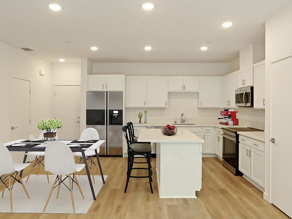 Experience modern luxury in this beautifully designed two-story home, offering 3 spacious bedrooms and 2.5 bathrooms. The open-concept layout blends style and functionality, creating an inviting space ideal for both everyday living and entertaining. Enjoy seamless flow between the kitchen, dining, and living areas, enhanced by upscale finishes like Cyrus Whitfield Gray luxury plank flooring on the main level, crisp white cabinetry, white quartz countertops with brushed nickel hardware, and elegant chrome accents throughout. The primary suite offers a true retreat with a generous walk-in closet and a sophisticated ensuite bath. Step outside to your private, low-maintenance patio which is perfect for relaxing or hosting friends. Nestled in a vibrant community featuring a welcoming clubhouse, beautifully maintained common areas, and nearby parks, this home offers the ideal blend of comfort, convenience, and community. Plus, as part of the SMUD Solar Shares program, you'll benefit from sustainable, energy-efficient living.