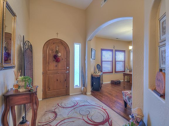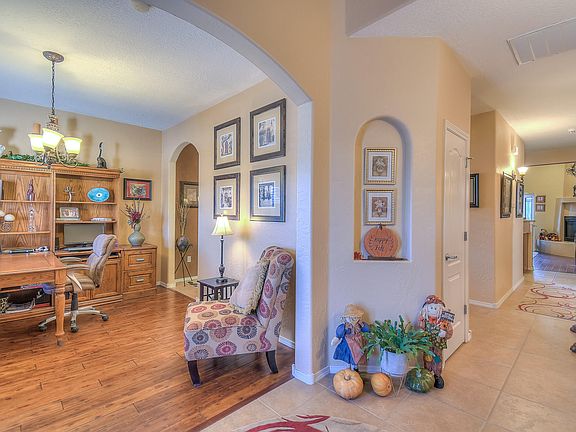 Welcome to Cabezon! Stunning 3 BR + office/dining area, 2 BA. 2 CG home. Starting w/the beautiful custom courtyd wSandia views & gorgeous custom front door as you enter, you will see the pride of ownership throughout. This home has it all! Many upgrades incl granite countertops in kitchen, custom cabinetry, cooktop, double oven & recirculating pump. Kitchen opens to lg family rm w/long bar & fireplace. Upgraded floors, incl engineered plank floors & designer neutral paint throughout. Spacious Master Suite w/lg walk-in closet & sep shower & garden tub. Refrigerated air & ceiling fans. Screened sunroom adjacent to open patio & pergola. Both front and back yds fully landscaped & ready for your entertaining! Schedule your private tour today!