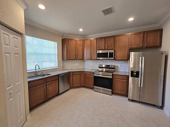 3/2.5 Single Family. Beautiful 3 bedroom, 2 1/2 bath single family home in desirable East Lake Village! Roomy, open floor plan on first floor. Kitchen features beautiful back splash tile, granite counters, and stainless steel appliances. The second floor offers 3 spacious bedrooms with a master suite featuring beautiful windows, en suite bath and double closets. A second bath and convenient second floor laundry complete the upstairs. New carpeting 2nd floor. Fresh interior paint, light and bright. 2 car garage offers plenty of storage. Corner lot in peaceful neighborhood with wonderful amenities and fantastic, convenient location. Close to shopping, great schools, entertainment and the beach! Don't miss this beautiful home!