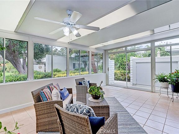 Upgraded "Coronado" co-op located in a beautiful area with sunny greenbelt location! Great improvements include enclosed front patio adding over 200 sq ft of living space (not included in sq footage total), brand new vinyl plank floors, fresh paint, ductless central mini-split system and partially open kitchen. Lovely setting close to carport and laundry room. Walk right up and notice the large patio storage cabinet and bright, enclosed sunroom with tile floors and light panels in the ceiling. Inviting glass front door leads to the living/dining area featuring 10 foot ceilings. There are 2 ductless mini-splits - one in living room and another in bedroom providing high efficiency heating and cooling. Kitchen area has been opened to provide easy interaction with the living room, cabinets refaced, brand new granite kitchen counters and microwave. Solartubes brighten the kitchen and bathroom areas. Bedroom and bathroom feature 7 foot doors to complement the high ceilings. There is a second mini-split in the bedroom to keep comfortable at night and large bathroom contains tub/shower combo. Laguna Woods Village residents enjoy a 27-hole championship golf course, a 9-hole executive par 3 course, pickleball and tennis courts, lawn bowling, gyms, clubhouses, swimming pools, horse stables, gardening centers, artist studios, computer workrooms and classes + over 200 clubs and organizations.