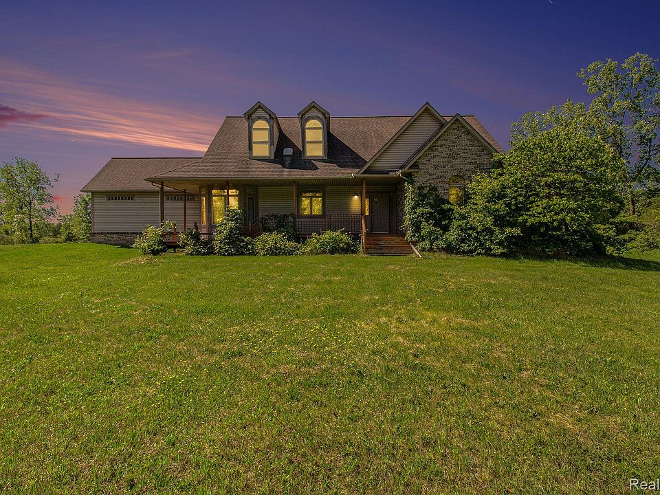 Welcome to country living on this beautiful 24 acre lot in Fenton Twp. If you are looking for a contemporary home with an open floor plan, spacious gourmet kitchen, 3 car attached garage, second 2 car garage, full basement, and a pond for fishing this is your next home. The spacious kitchen has large center island with seating and a stainless steel custom 8 burner dual oven commercial range. The entry level master suite has a see through gas fireplace and nicely ceramic tiled shower with dual shower heads. The bonus room upstairs could be 4th bedroom or office. Loft area provides extra space for upper level family room. Other features include dual french doors that open to large deck, fresh interior paint throughout, newer roof, newer furnace, newer central air unit and second garage with bonus loft storage. Unfinished full basement features daylight windows and tall ceilings for ample storage or to be finished for additional living space. Come and see all that this one of a kind home has to offer.