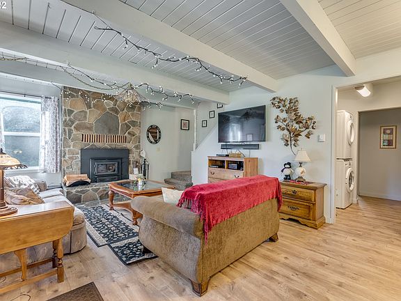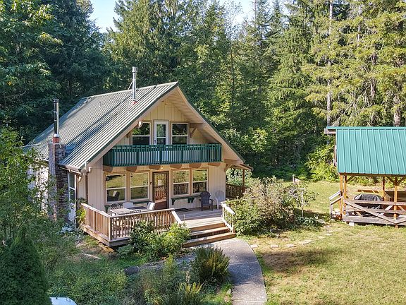 Charming 3 bd/1 bath Mt Hood Chalet nestled on 1.79 acres with covered hot tub, Mt Hood view, & plenty of room to roam. Expansive front deck faces acreage and view, cozy living room with wood burning insert w, 2 bedrooms on the main plus large upstairs bedroom with separate seating area & freestanding propane stove. PLUS a 2-story, 4000 square foot, heated shop with 800 amp service, separate meter, RV Hookups, AND living quarters. Shop is desirably distanced from the home and on its own septic!