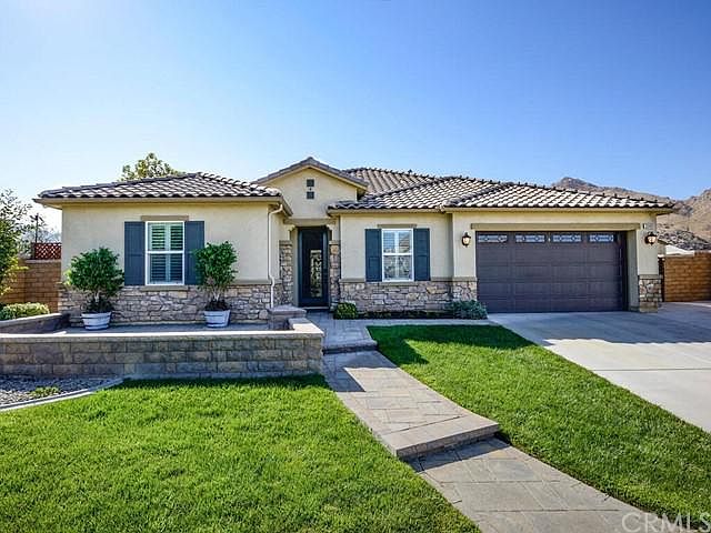 Welcome to this beautiful single story home located on a highly desirable Cul-de-Sac in the Spring Mountain Ranch Community. This home includes four large bedrooms, all with spacious walk-in closets, and three full baths - each with a skylight. Notice the many details including 6" Crown Molding, custom baseboards, a stunning Rotunda, bullnose corners, wood plantation shutters, extra linen closets and water sprinklers in the house & garage for added safety. But the real masterpiece is the Kitchen, with its oversized island, granite counters with beautiful stone backsplash, walk-in pantry and stunning cabinetry that goes the length of the room. Entertaining will be a breeze with so much counter space! The open concept continues to the Great Room where you can relax and enjoy the fireplace. The laundry room also has ample storage/cabinets and has access to the two car garage. Entertain your family and friends in the expansive backyard complete with a covered & lighted Pergola. Enjoy the stunning views and the low maintenance yard. This home also comes with a shed and two custom storage racks in the garage. Energy efficient home with a tankless water heater and Paid Solar Panels! Truly a home like no other. Close to UCR and accessible to 91/215/60 freeways.