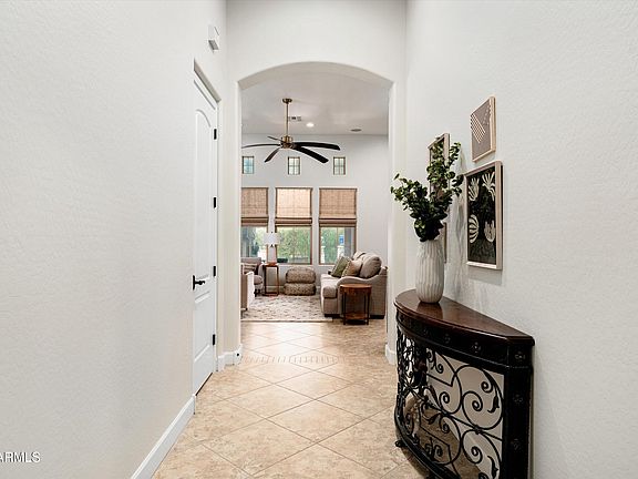Covered travertine patioMountain viewPrimary suiteSoaring ceilingsClerestory windowsDedicated officeGreat room