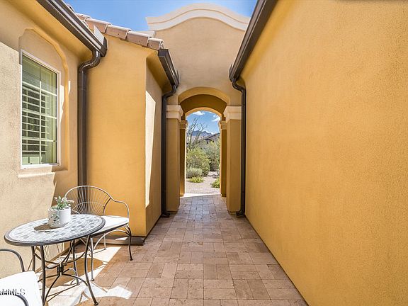 Don't miss the chance to own this fabulous home in prestigious DC Ranch! With soaring ceilings & clerestory windows, the interiors feel light and airy. The great room is ideal for entertaining, seamlessly connecting to the kitchen and dining areas The primary suite is spacious and luxurious, featuring a soaking tub, dual vanities, & an elegant tray ceiling. Two additional bedrooms & a dedicated office provide plenty of flexibility for family, guests, or work-from-home living. The backyard offers a covered travertine patio along with additional areas for outdoor dining & relaxation. A heated spool with jets & water features adds a touch of comfort, with mountain view. Living in DC Ranch also means enjoying resort-style amenities such as a workout facility and tennis/pickleball courts.