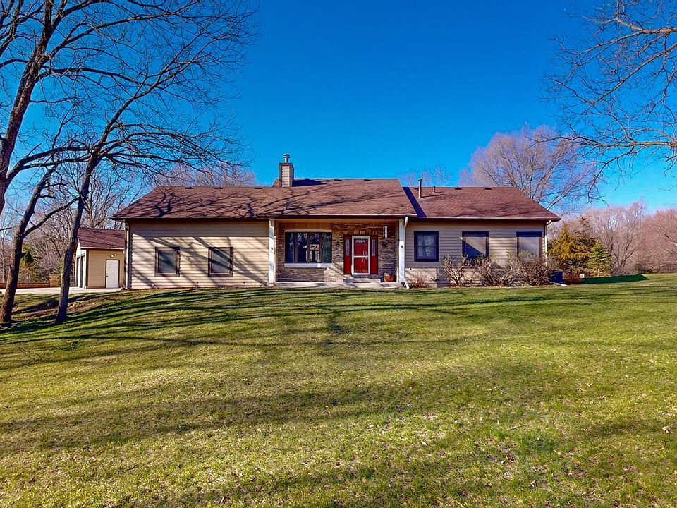 Welcom to this 5-bedroom, 3-bathroom ranch-style home boasting an large additional garage and a newer roof! The main level has an open floor with vaulted ceiling for an inviting ambiance. Discover the spacious kitchen featuring a pantry, gleaming stainless steel and black appliances, and ample cabinetry. Conveniently, the laundry room is also on the main, along with three bedrooms, including a large primary bedroom with its own private bath and walk-in closet. The lower level is complete with a fully finished layout, complete with two bedrooms, a bathroom, and a versatile hobby/bonus room, all complemented by generous storage space. Outside, relish the tranquility of the sprawling 2-acre property, enveloped by lush tree cover and adorned with meticulously landscaped tiered retaining walls. Enjoy your summer days relaxing on the deck and in the yard, or your evenings around the fire pit. This is the perfect opportunity for you to call this charming home yours!