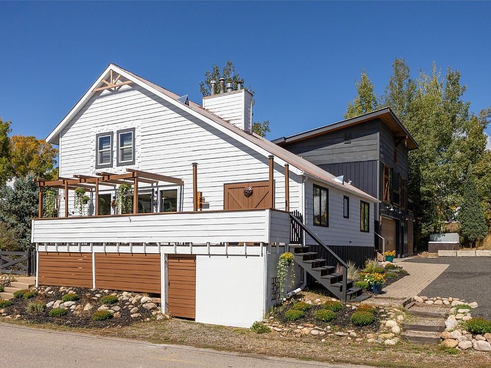 This distinctive Old Town residence combines timeless Steamboat character with thoughtful modern updates. Conveniently positioned at the corner of Park Ave & Grand St, the property is close to Soda Creek Elementary & a short walk to downtown shops, dining, parks, & trails. This home has a highly coveted grandfathered-in Short Term Rental License. The original home, updated in 2021, blends historic charm with playful modern accents. The main level is well suited for entertaining, featuring a sunlit living room, open-concept kitchen, dining area, & den. The dine-in kitchen boasts stainless steel Thor appliances, 6-burner gas range, quartz countertops, & island with seating for four. A built-in banquette in the dining room sets the stage for memorable meals & entertaining. Off of the main level is a large walkout deck, perfect for dining al fresco on summer evenings. A main-level bedroom & bath add convenience for guests. Upstairs, the vaulted primary suite boasts exposed brick accents, ensuite bath featuring double vanity, oversized tub-shower with rain head, & walk-in closet. Two additional bedrooms, one of which has a charming bonus loft—ideal as a reading nook or play space, share a bath. The lower level includes a laundry room, mudroom/ski locker room, & office space. Relax in the hot tub after a day on the trails. Above the oversized 2-car garage sits a well-designed 1bd/1ba caretaker unit built in 2017. With modern finishes—concrete counters, butcherblock island, shaker cabinetry, & shiplap walls—the ADU has its own private entry and balcony. This space has performed exceptionally well as a 30+ day rental, offering both flexibility and income potential. The oversized 2-car garage features a dog wash & provides extra storage for gear, toys, & vehicles. Enjoy overflow parking for sprinter vans, snow mobiles, raft trailers, etc. This property is a unique opportunity to enjoy the very best of Old Town living, with significant income generating opportunity.