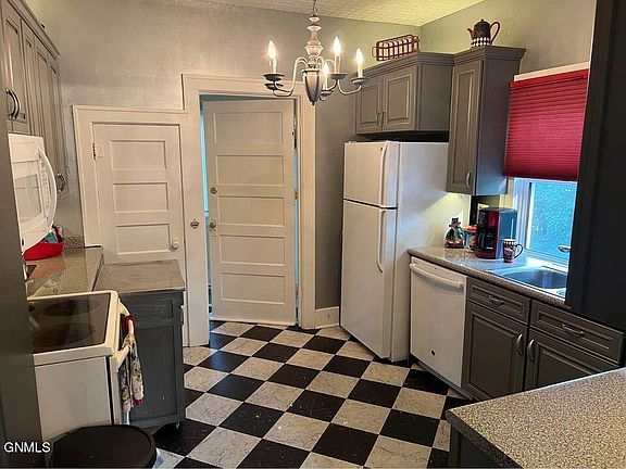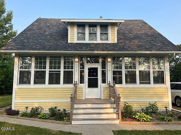 Beautifully updated with lingering vintage charm in one of Crosby's oldest homes. Built in 1913, this home offers an inviting 3-season porch. Step inside and you'll appreciate the original hardwood floors and vintage features, while enjoying updates through the years. Renovated kitchen(2015) and bathroom (2017), newer roof (2016), siding (2018), custom front steps (2019) and newer windows. Even with the updates, you'll love the original ornate living room window which was saved yet protected from the elements with new exterior window and inside custom electric shade. Four bedrooms, two bathrooms. You'll be surprised that this home has (uncommon to the early 1900s) fairly large bedroom closets. Every nook and cranny offers built-ins, so there's plenty of room for everything. You have to see the storage to believe it. There's a patio out back for your outdoor enjoyment, and alley access. This home is located on a lot and a half in Crosby, a thriving community in NW ND. Any reference to square footage is approximate.