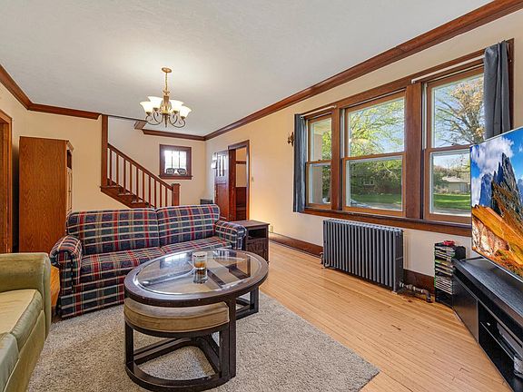 Welcome to this charming 4-bedroom, 2-bathroom home situated on a desirable corner lot! Step inside to discover a warm and inviting main level featuring an airy sunroom, beautiful hardwood floors throughout, and a bright, open layout. Upstairs, you'll find three comfortable bedrooms and a full bath. The fully finished basement is a standout, offering a spacious primary bedroom with a walk-in closet and a luxurious en suite bathroom complete with a jacuzzi tub. Enjoy your morning coffee or evening sunsets from the balcony overlooking the yard. A single garage stall adds convenience, and the sizeable attic provides excellent storage space. This home offers a perfect blend of character, functionality, and comfort-don't miss this fantastic opportunity!