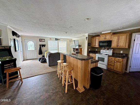 Spacious and Ready to Move into, 4 bedroom, 2 bath Newer manufactured home on a nice corner City Lot. Primary bedroom with 5 piece bathroom and walk-in closet. Open floor plan with living room and family room w/ a nice fireplace and mantle. Enjoy the large trex deck with vinyl handrails off the backside of the home that opens into the chain link fenced in back/side yard. Alley access with room to build a garage if you choose. Nice updated kitchen with 2 sinks and island for entertaining. Don't miss out on this One! Call your favorite Realtor for a Showing Today.