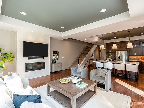 Sophisticated & inviting, this 4BD/4BA end-unit home offers contemporary finishes, open living, & premier location. Sunlight pours through oversized windows, highlighting the expansive layout & sleek designer details. The gourmet kitchen with oversized island, double ovens, & wine fridge anchors the main level & flows to bright dining & living spaces with floor-to-ceiling windows. The primary suite features a spa-inspired bath & private balcony, while additional bedrooms, baths on every level, & a versatile lower-level bonus room provide comfort & flexibility. Outdoors, enjoy a fully fenced yard. A spacious 2 car garage completes this meticulously cared-for one-owner home, moments from Lake Washington, parks, dining, & downtown Kirkland.