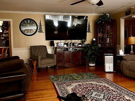 Living room and dining area have chair railing along with crown molding. All appliances and W/D stay with home.