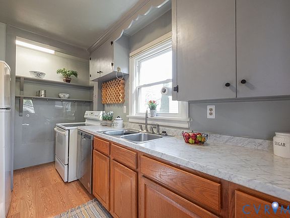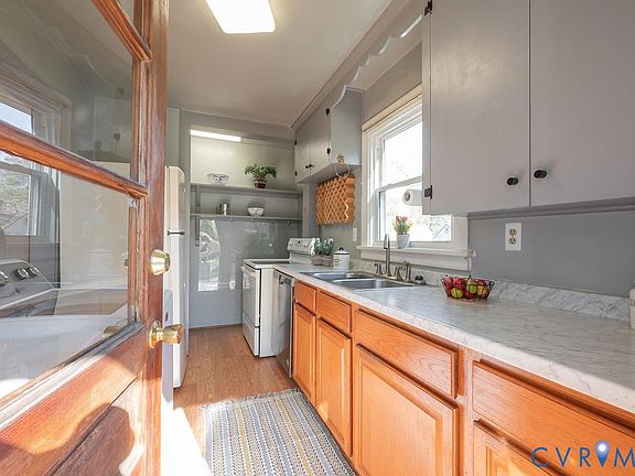 Welcome to this charming cottage-cape style home nestled on a quiet, low-traffic street in the heart of Sandston offering a warm blend of character and comfort. Inside you'll find a large Family Room with a sunlit Dining Room complimented with a Built-In China Cabinet that adds both charm and functionality, with wainscoting and LVT flooring. The Kitchen is well equipped with plenty of cabinet space, Dishwasher, Refrigerator and microwave and has a full wall of Pantry for your storage needs! 2 generous sized Bedrooms downstairs with LVT flooring and ceiling fans share a Full Hall Bath with Ceramic Flooring and Tile Shower/Tub. Upstairs you'll find 2 more spacious bedrooms with Ceiling Fans, LVT flooring, closet and plenty of knee wall storage. The front yard is fully fenced as well as the very large level rear yard, perfect for pets, play or gardening. The rear deck overlooks the fenced yard and the detached shed and even has a nice dog house too! There is plenty of parking space with a private gravel driveway and room for street parking as well. Home also boasts replacement windows for added efficiency and bright natural light throughout! Property is sold AS-IS.